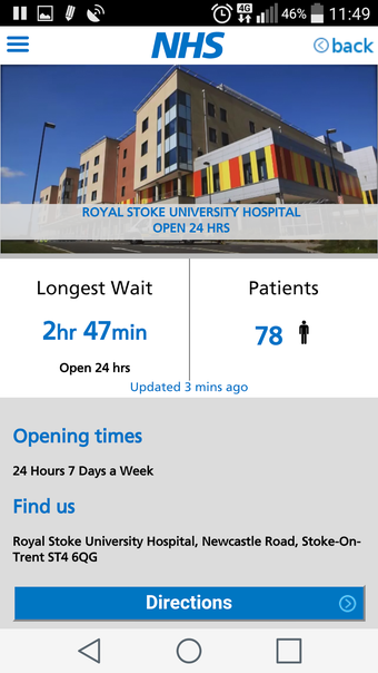 实时等待时间提供所有医院和全科医生诊所的最新数据。您可以通过输入您的邮政编码、选择您的卫生区或地区信托、选择单个站点或按医院、全科医生诊所或治疗中心浏览来访问它。